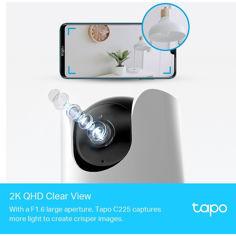 TP-LINK Tapo C225, 2K QHD Wi-Fi Güvenlik Kamerası, Yapay Zeka Desteği, Hareket Tespit ve Takibi, 360°, Renkli Gece Görüşü, Çift Yönlü Sesli İletişim, Bulut/Yerel Depolama, Bebek Ağlaması Tespiti