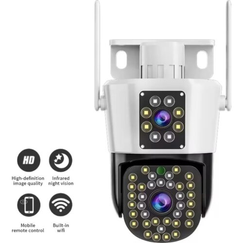 Enshall 4mp 4K Ultra Hd Gece Görüşlü Çift Lensli Hareket Takipli Alarmlı Dış Mekan Ip Güvenlik Kamerası