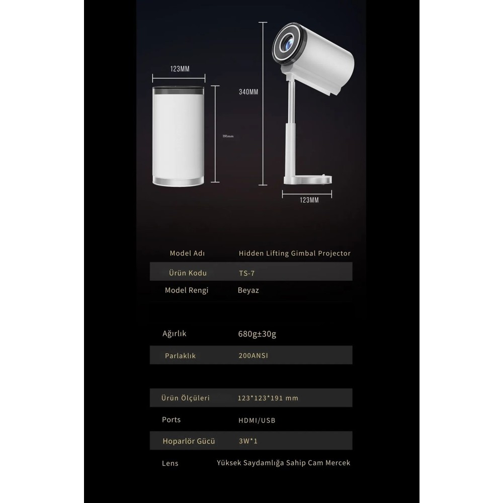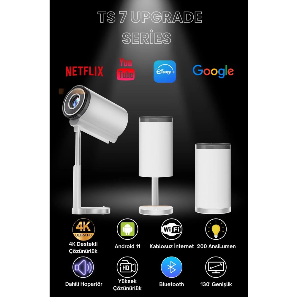 Ts 7 Tripodlu Upgrade Android Sinema Projeksiyon Wifi Destekli Akıllı Projektör