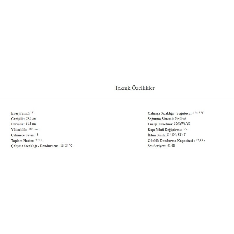 Uğur Ued 8273 Dtk Nfı D/s 8 Çekmeceli 273 lt E Enerji Sınıfı No Frost Dikey Derin Dondurucu