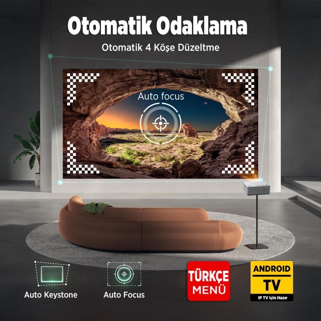 Vankyo Aurzen Boom 3 4K Android Projeksiyon Cihazı + Auto Focus + Auto Keystone + 6g Wifi + 5.2 Bluetooth +300 Inç Yansıtma + 36W Hifi Dolby Ses Sistemi
