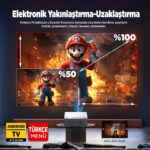 Vankyo Sunspark 500W Android TV 1080P Destekli Projeksiyon Cihazı 5G Wi-Fi + 5.1 Bluetooth – LCD LED – 240 Inç Yansıtma-Dahili Hoparlör-PS5/XBOX/HDMI/USB/VGA/AV
