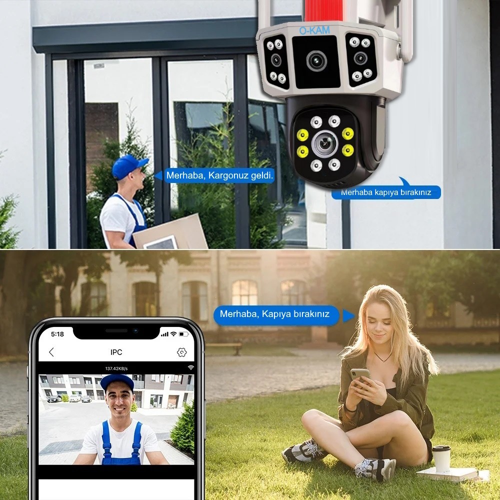 Ventus 3035 Dual Lens 360° Görüş Waterproof Akıllı Kamera Wifi O-Kam Pro Türkçe Kişi Takibi (Adaptör Dahil)