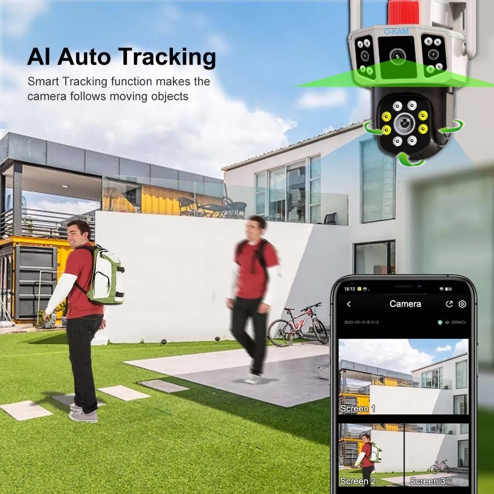 Enshall 4mp 4K Ultra Hd Gece Görüşlü Çift Lensli Hareket Takipli Alarmlı Dış Mekan Ip Güvenlik Kamerası