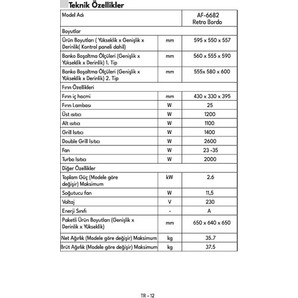Vestel AF-6682 Retro Bordo 69 Lt A Enerji Sınıfı Ankastre Fırın