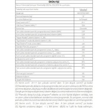 Vestel KM 127202 WIFI 12 kg Kurutma Makinesi