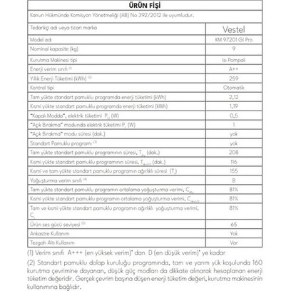 Vestel KM 97201 GI Pro 9 kg Kurutma Makinesi