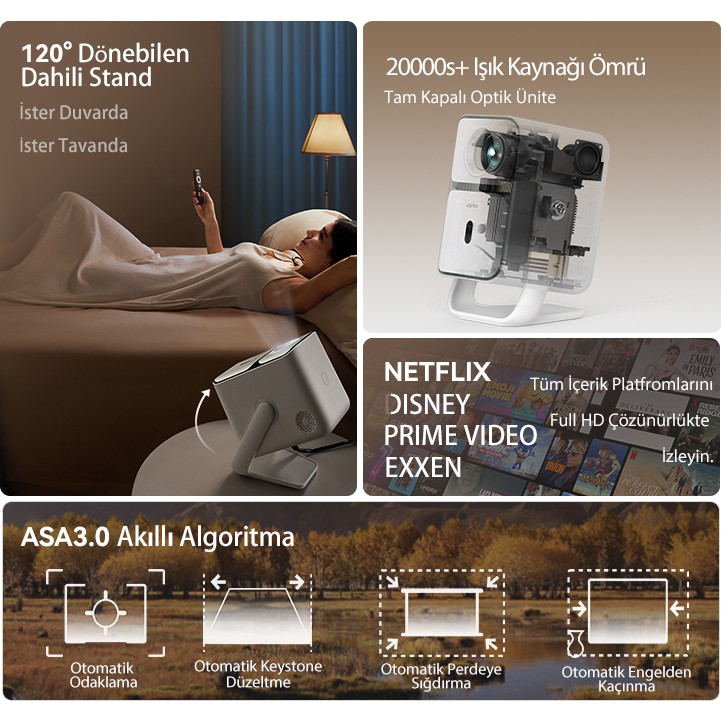Robeve Full Hd 1080P Şarjlı Projeksiyon Cihazı – Dev Ekran, Wifi Bağlantılı, Hazır Android Kurulu, Hdmı/usb Girişli, Ev Sinema Sistemi Taşınabilir Projektör Sinema Sistemi Şarjlı Projeksiyon Cihazı