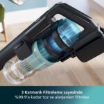 Ürünün 2’si 1 arada tasarımı sayesinde hem halıları hem de sert zeminleri temizleyebilirsiniz. Ayrıca fırça başlığı sayesinde mobilyaları ve dar alanları da kolayca temizleyebilirsiniz. Toz haznesi ise kolayca çıkarılabilir ve temizlenebilir özelliktedir.
