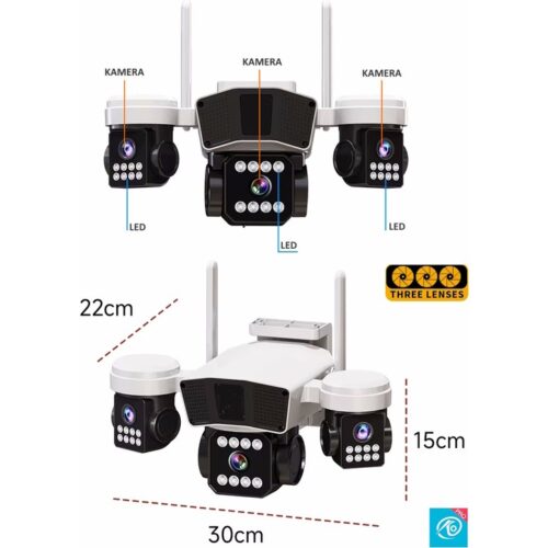 Ventus O-Kam 3036PRO, 9mp, Wifi, 3 Lens, Akıllı Kamera, Yapay Zeka, Insan Algılama, Su Geçirmez, Uzaktan Izleme, Gece Görüş